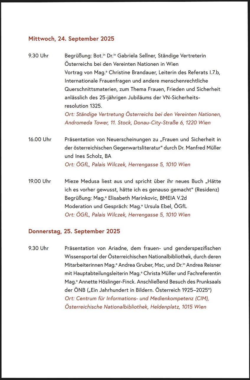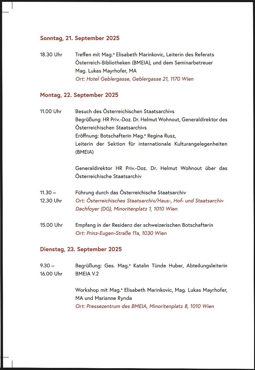 N.N.: 20. Wiener Seminar der Österreich-Bibliotheken im Ausland. https://www.oesterreich-bibliotheken.at/aktuelles/veranstaltungen/detail/20-wiener-seminar-der-oesterreich-bibliotheken-im-ausland (30.9.2025), datiert mit 21.-26.9.2025.