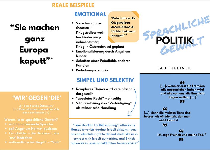 In vier thematisch fokussierten Projekten, erarbeitet von jeweils zwei Studierendengruppen, wurden unterschiedliche Schnittstellen von digitaler sprachlicher Gewalt beleuchtet: